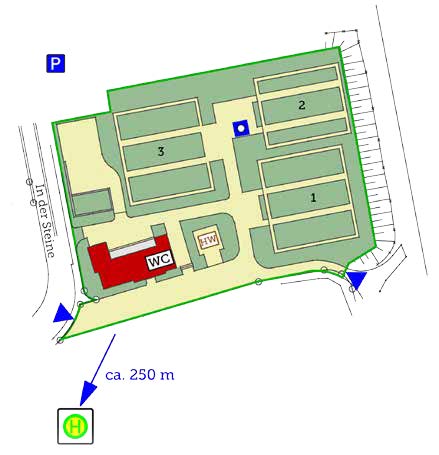 Der Plan dient der Orientierung auf dem Friedhof in Fachsenfeld bei der Suche nach vereinzelten Gräbern. Die einzelnen Abteilungen und ihre Bezeichnungen sind eingezeichnet.